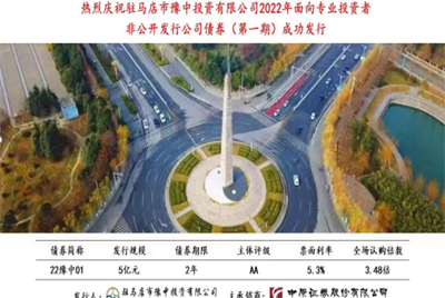 喜報(bào)!駐馬店市豫中投資有限公司2022年5億元非公開公司債